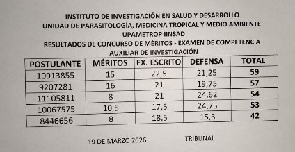 Se convoca a estudiantes de la facultad de medicina para acceder a la auxiliatura de investigación en la unidad de Parasitologia y medicina tropical del IINSAD.