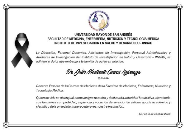 La Dirección, personal docente, asistentes de investigación, personal admistrativo y auxiliares de investigación del IINSAD se adhieren al dolor que embarga a la familia de quien en vida ver mas ...
