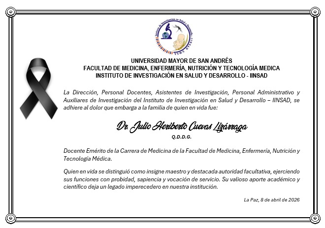 El 22 de agosto se realizó la firma del convenio entre el HEMOCENTRO Banco de Sangre de Referencia Departamental La Paz y el Instituto de Investigación en Salud y Desarrollo de la Facultad de Medicina, Enfermería, Nutrición y Tecnología Médica de la Universidad Mayor de San Andrés que tiene el objetivo de crear una plataforma de coordinación, interacción, intercambio de información y cooperación mutua para fortalecer actividades académicas, impulsar el desarrollo de investigaciones científicas y publicaciones en campos afines.